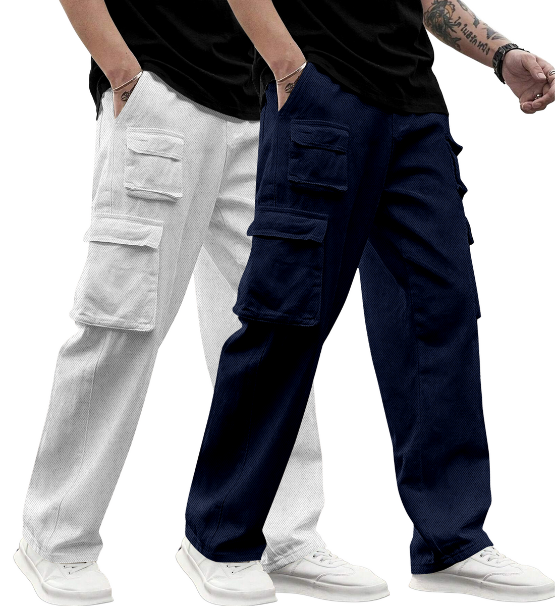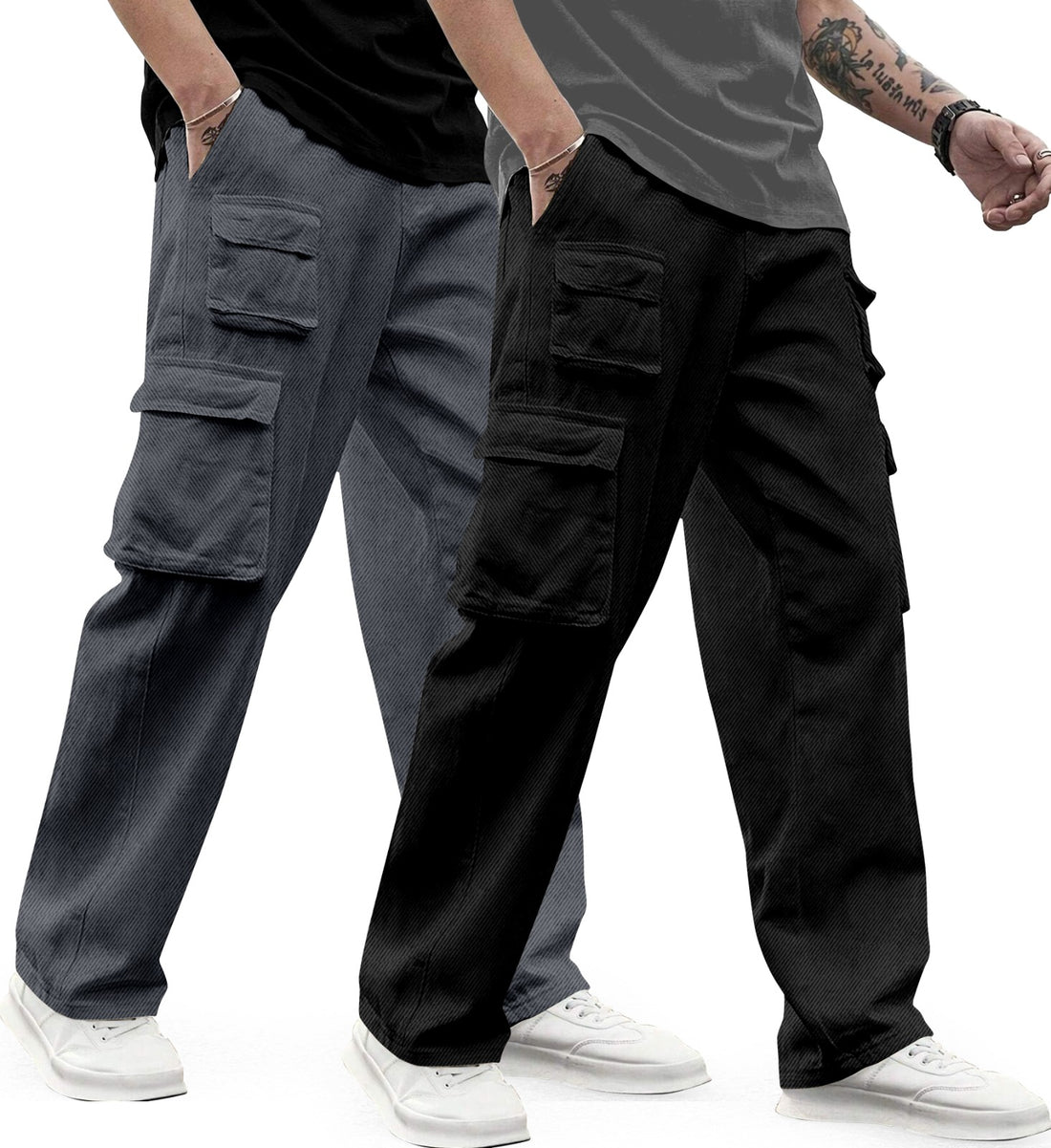 Cargo Cotton for Men.Track Pant for Men.Oversize Cargo Trouser.Men's Oversized Cargo Utility Joggers.Multi Poket pent.Combo Pack Of 2