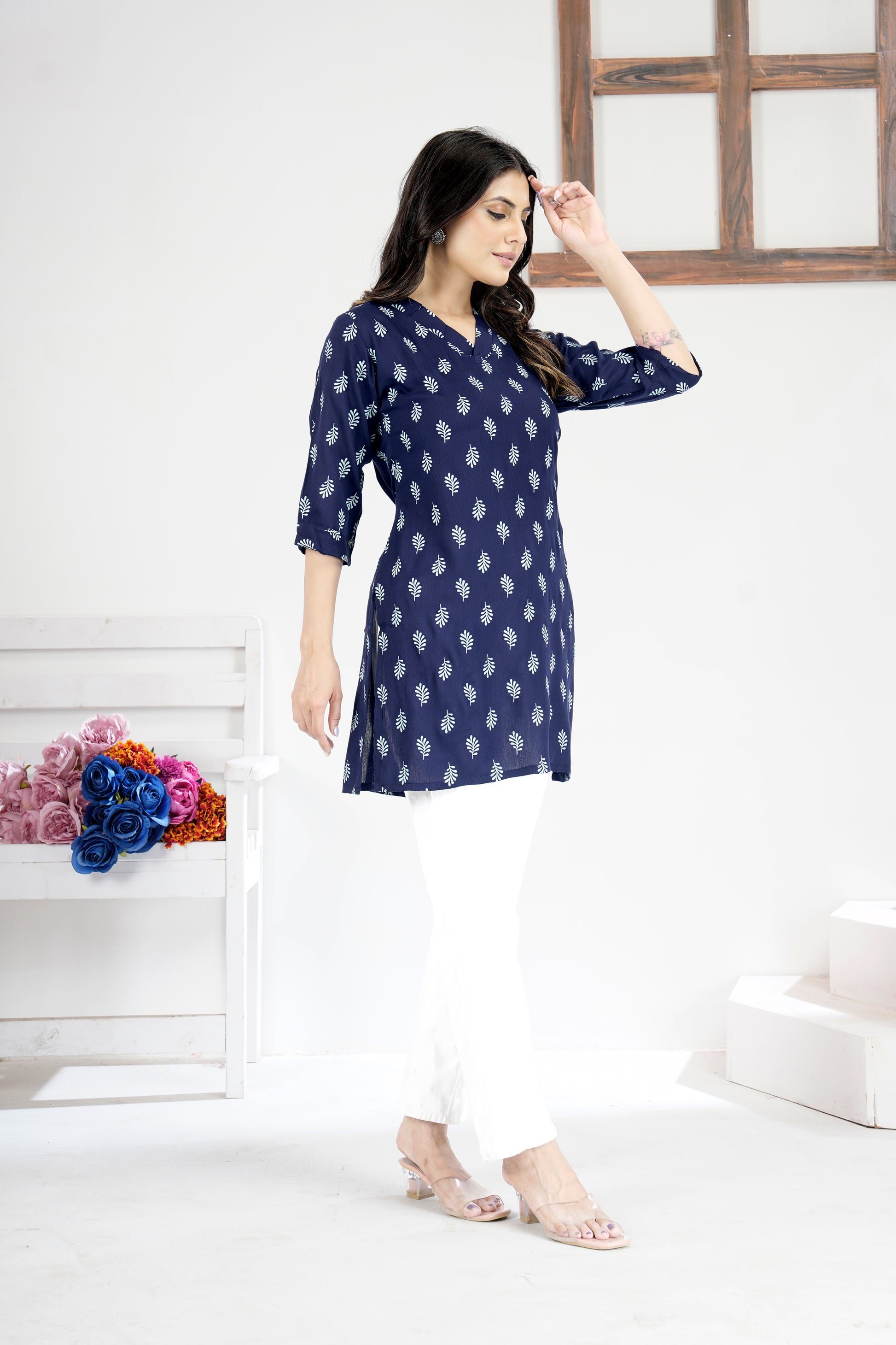 Soft & Stylish Navy Blue Cotton Tops and Tunics for Women.