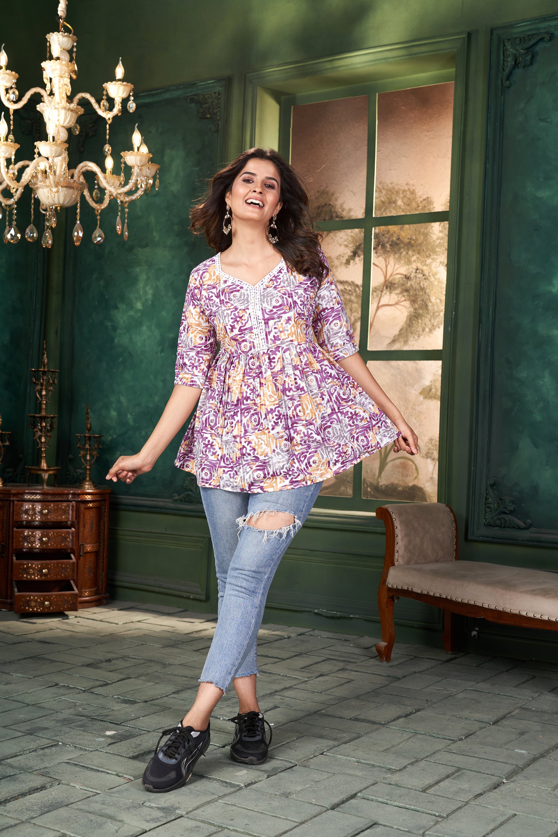 Upgrade your wardrobe with this stylish and comfortable Women's Cotton Printed Top & Tunic. Perfect for any season, this top is a must-have for every fashion-forward woman.