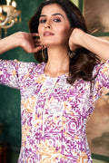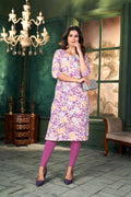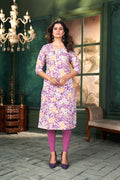 Women Printed Purple Cotton Kurti.