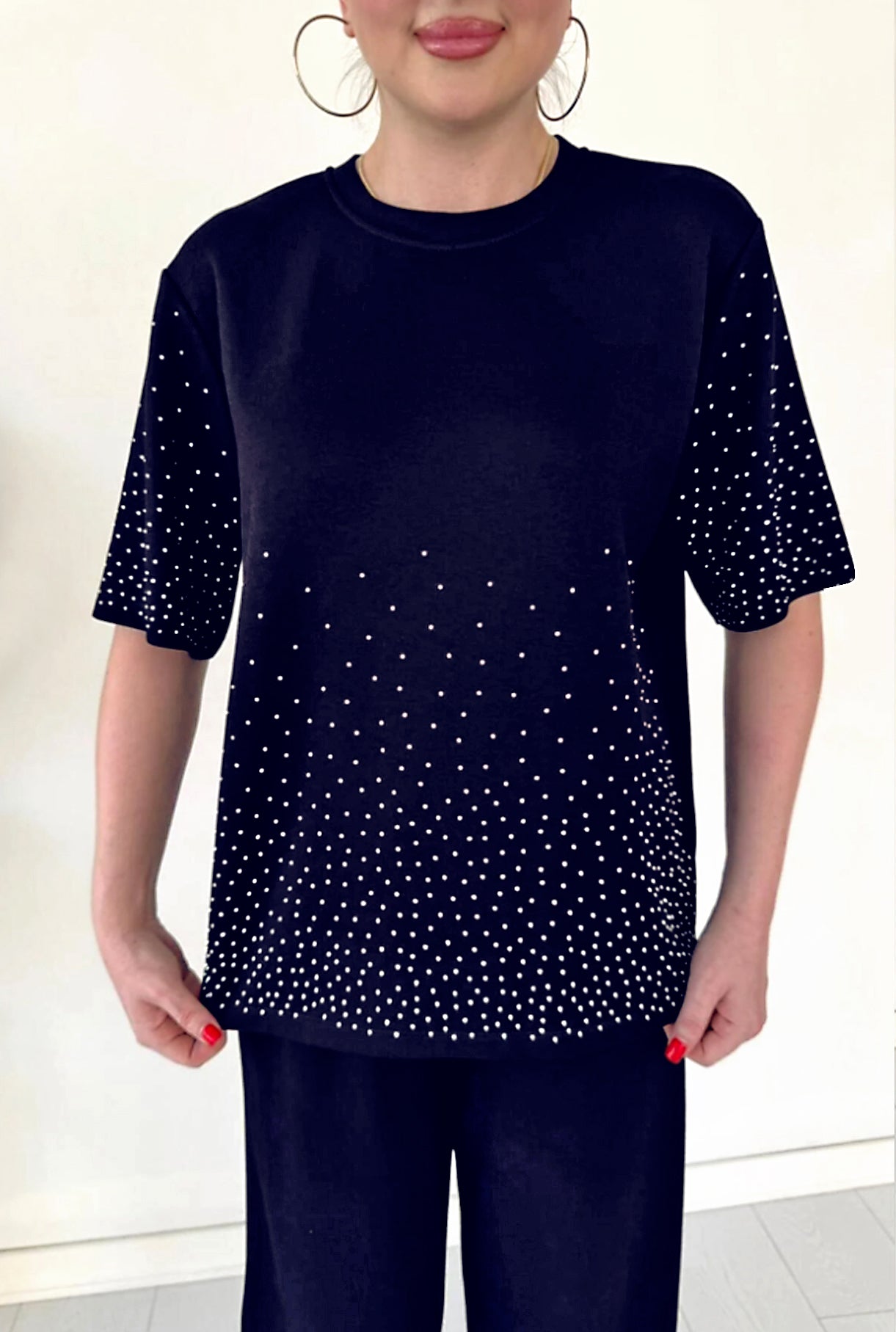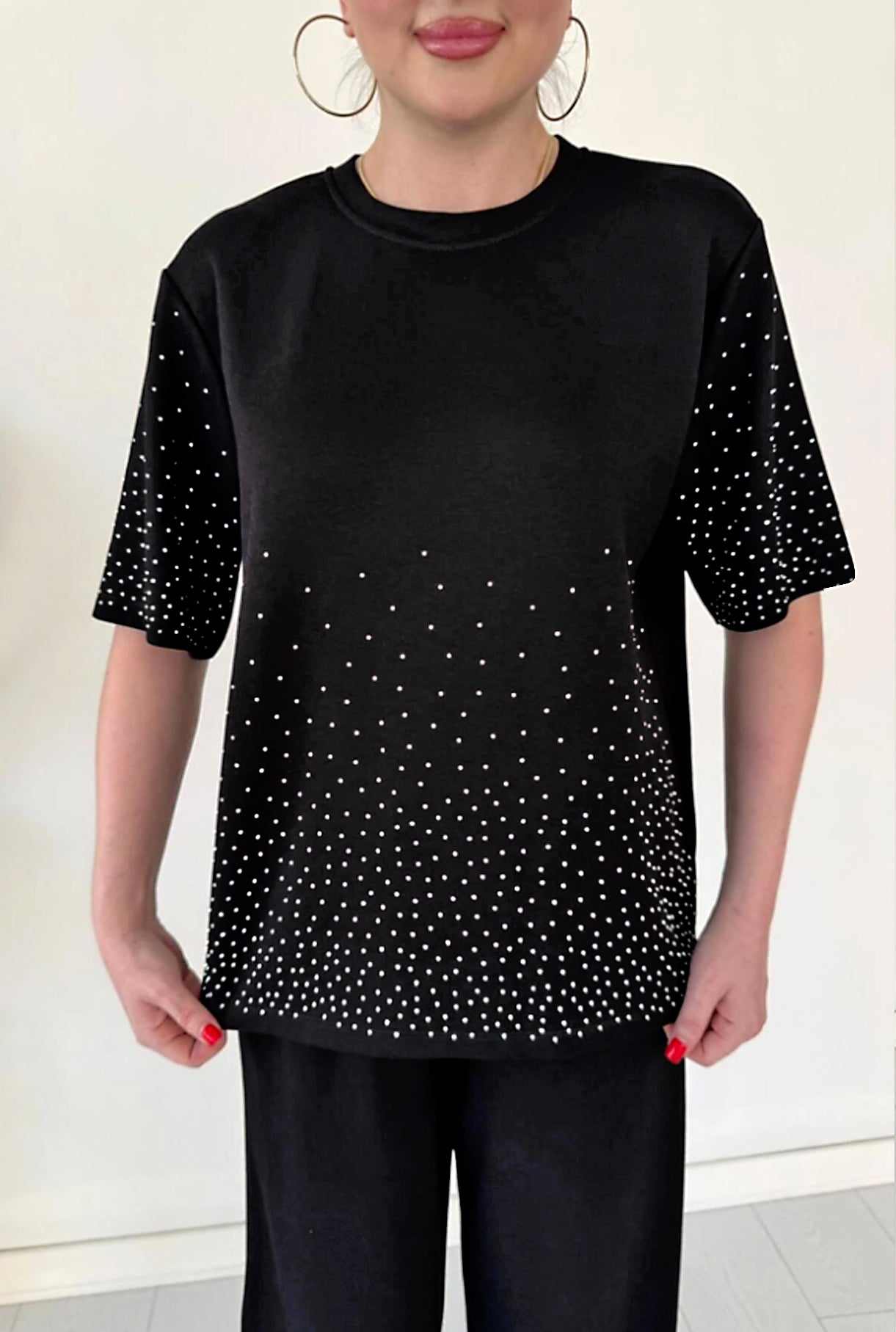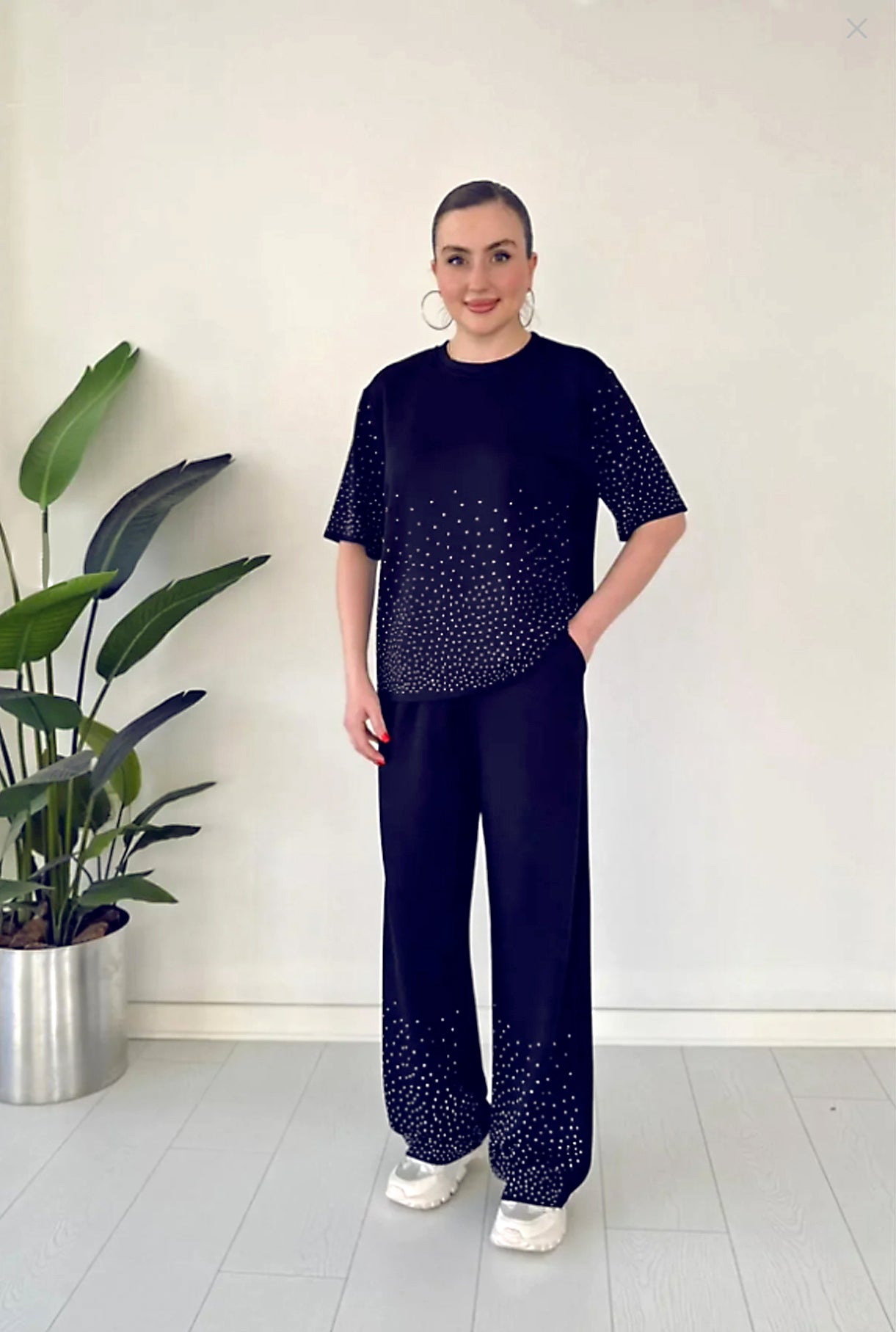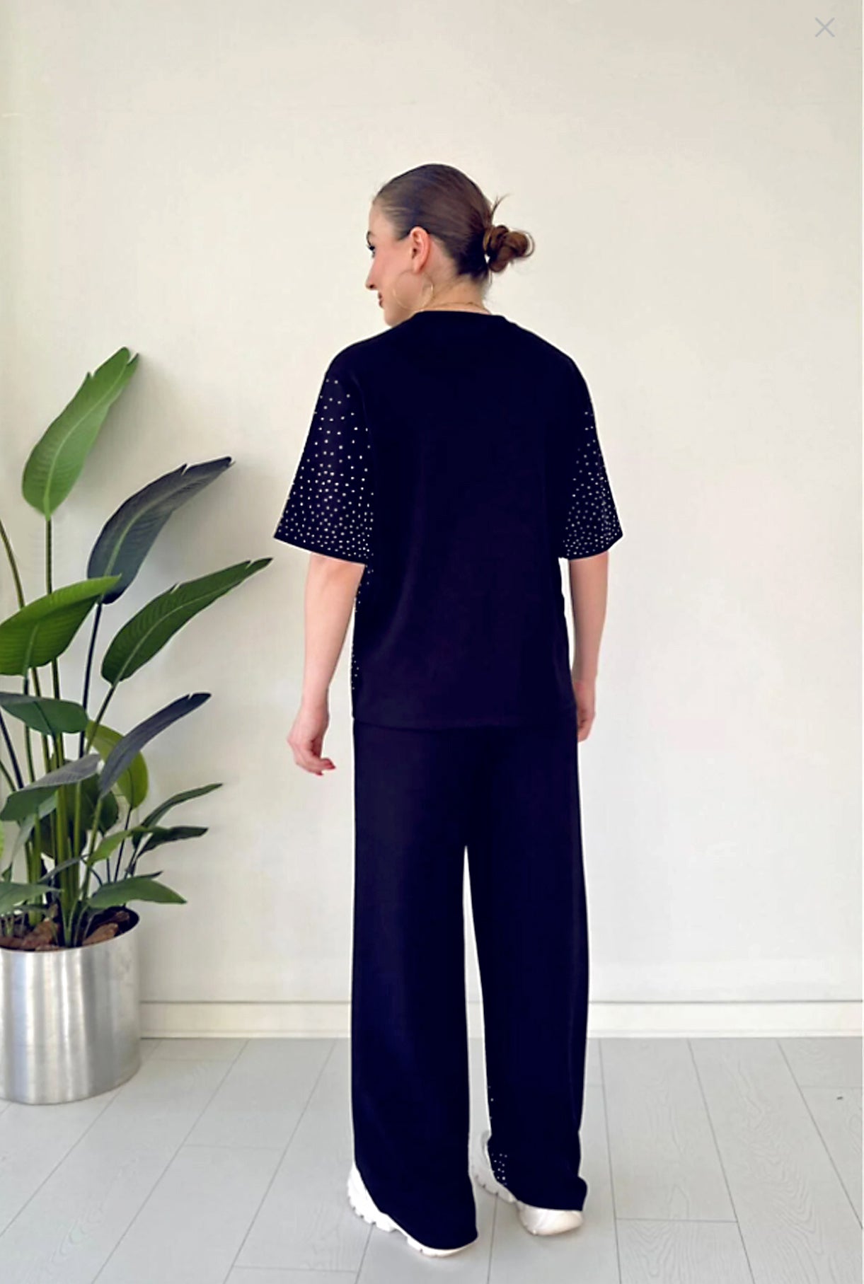 Women’s Black Co-ord Set with White Diamond | Casual & Party Wear